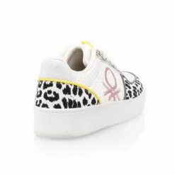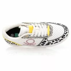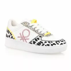 Cette paire de baskets Benetton au style tendance et ultra crĂ©atif arbore des motifs animaliers contrastants, des pois graphiques, des dĂ©tails jaune vif et le logo de la marque brodĂ© dans une nuance rose bonbon. Le rĂ©sultat ? Un modĂšle 100% addictif quâon ne voudra plus quitter !