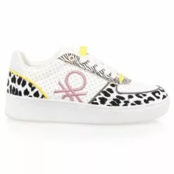 Cette paire de baskets Benetton au style tendance et ultra crĂ©atif arbore des motifs animaliers contrastants, des pois graphiques, des dĂ©tails jaune vif et le logo de la marque brodĂ© dans une nuance rose bonbon. Le rĂ©sultat ? Un modĂšle 100% addictif quâon ne voudra plus quitter !