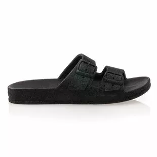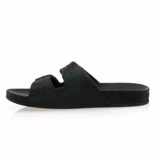 Ces mules glitter noires nous sont proposées par la marque Cacatoès. Leur motif à paillettes vient insuffler une énergie mode irrésistible à ce modèle culte de l’été. On les adopte avec beaucoup de plaisir pour profiter de leur confort, de leur légèreté (et aussi de leur parfum « bubble gum » !).