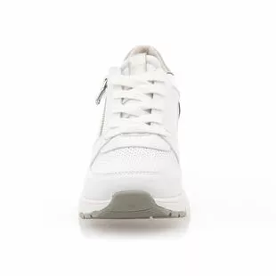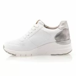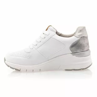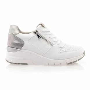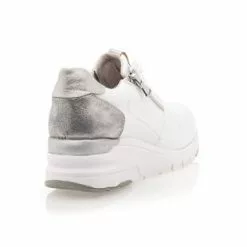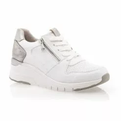 ChaussĂ©es en un clin dâĆil grĂące Ă leur petite fermeture zippĂ©e trĂšs pratique, ces baskets blanches compensĂ©es accompagneront nos pas au quotidien. On adore les dĂ©tails argentĂ©s (notamment sur le contrefort) qui viennent rythmer les lignes modernes de cette crĂ©ation tendance signĂ©e S. Oliver.