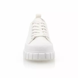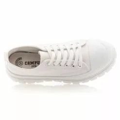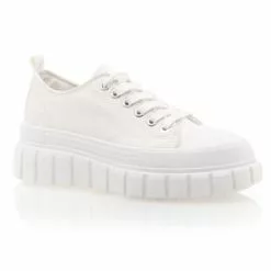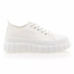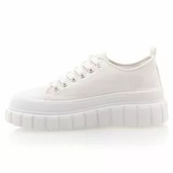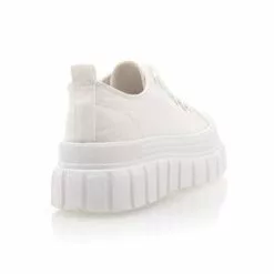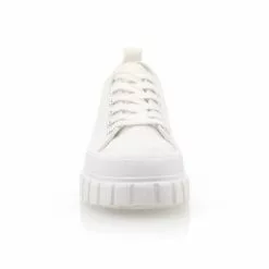 Ces jolies tennis blanches compensĂ©es se composent dâune tige en toile et dâune semelle surdimensionnĂ©e au large crantage. IdĂ©e look : et si on portait ces chaussures originales avec une robe tee-shirt de couleur vive, un blouson en jean et un sac Ă dos sportswear ?