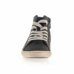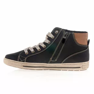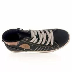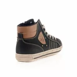 ContrastĂ©es de surpiqĂ»res et de touches cognac, ces tennis montantes noires au col de cheville rembourrĂ© affichent des lignes dĂ©contractĂ©es, que lâon utilisera avec beaucoup de plaisir pour accompagner les jolis petits looks du quotidien. Avec un jean brut et un sweat par exemple ?