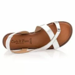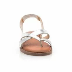 On se laisse instantanément séduire par la très belle qualité et par le style tendance de cette paire de sandales à entre-doigts en cuir argenté. Et si on la portait avec une petite robe patineuse rose ou grise et un blouson en jean ?
