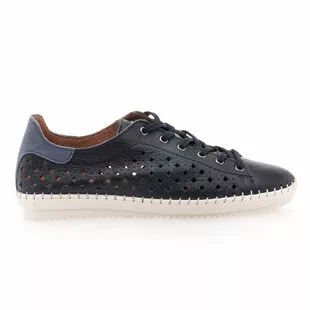 Le cuir bleu marine de ces baskets de ville ajourĂ©es provient dâune tannerie travaillant selon les critĂšres environnementaux et sociaux portĂ©s par le Leather Working Group. Ce collectif international indĂ©pendant effectue des audits partout dans le mode pour assurer le respect de pratiques Ă©cologiques et durables dans la filiĂšre cuir. Des valeurs qui nous parlent et un style quâon adore⊠impossible dây rĂ©sister !