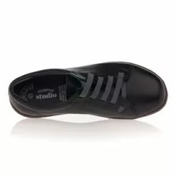 Ces tennis de ville en cuir noir écoresponsable certifié LWG nous proposent un style urbain élégant, confortable et trÚs facile à assortir ! Par exemple avec un jean skinny, un pull gris à mailles fines, un blouson zippé et un sac besace porté en bandouliÚre ?