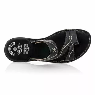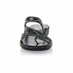 Ces sandales à entre-doigts en cuir noir au talon légèrement compensé associent un style naturel plein de charme à une très confortable qualité de chaussant. Un cocktail idéal pour accompagner les tenues légères de l’été ! Une jupe en lin et une tunique brodée par exemple ?