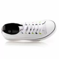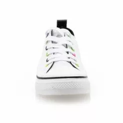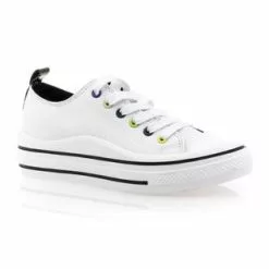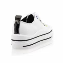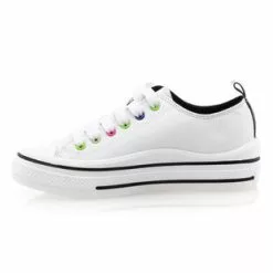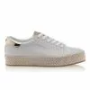 Ces tennis en toile blanche reposent sur une trĂšs confortable semelle de marche Ă©paisse de 4 cm. Leur nuance est contrastĂ©e par des liserĂ©s bleu marine ainsi que par des Ćillets de laçage multicolores. On les utilisera avec beaucoup de plaisir pour accompagner nos tenues casual du quotidien.