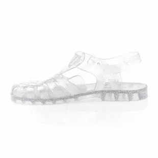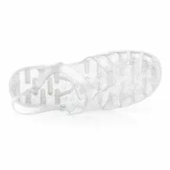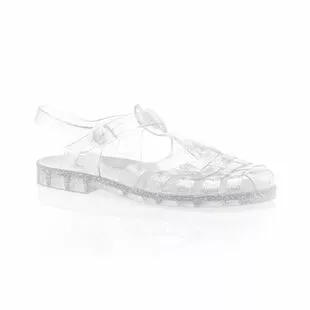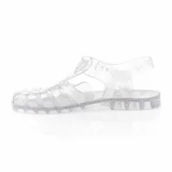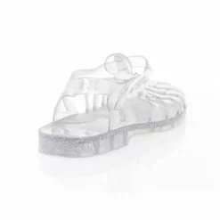 On replonge instantanĂ©ment en enfance grĂące Ă cette paire de sandales mĂ©duses transparentes au subtil motif argentĂ©. Quel plaisir de retrouver ce style ludique pour accompagner les belles journĂ©es dâĂ©tĂ©, surtout si elles se dĂ©roulent Ă la plage ou au bord dâun point dâeau !