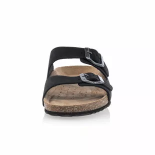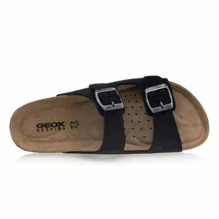 Ces mules noires Geox pour femme se composent d’une bride transversale en cuir avec deux boucles à ardillon et d’une semelle en liège. La partie intérieure, dotée de la technologie « Respira » de la marque, présente une forme anatomique assurant un parfait soutien de la voûte plantaire. Un cocktail tout simplement idéal pour les beaux jours !