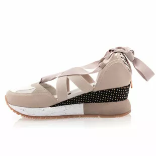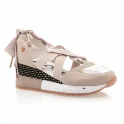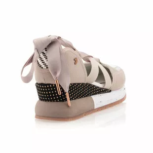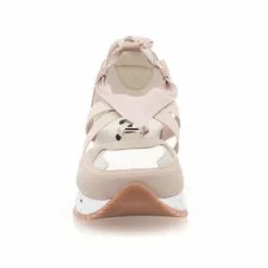 Ces baskets ouvertes Gioseppo (que lâon pourrait quasiment mĂȘme qualifier de sandales) sâinscrivent dans un registre mode particuliĂšrement original. En effet, leur tige ouverte est sublimĂ©e par un laçage ruban, des brides Ă©lastiquĂ©es et une semelle multi matiĂšres et multicolore compensĂ©e haute de 5 cm.