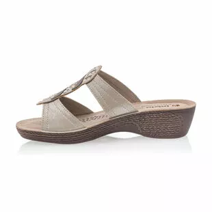 Ces mules compensées à la délicate nuance « sable doré » accompagneront nos pas dans un style irrésistible de charme, tout en assurant un chaussant particulièrement agréable. Un nouveau basique précieux du vestiaire féminin estival qu’on adopte sans aucune hésitation et avec beaucoup de plaisir !