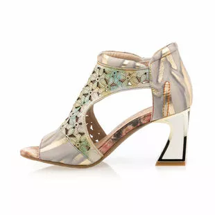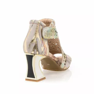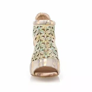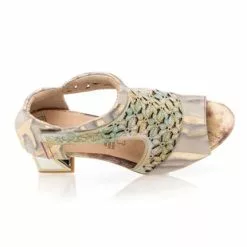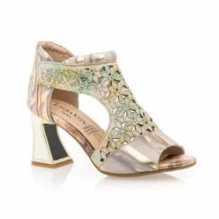 On illumine instantanément la tenue du jour grâce à ces sandales dorées en cuir Laura Vita. Leur jeu de nuances irisées, leur motif floral ajouré et leur talon haut glamour de 7 cm à la forme originale viennent en effet donner naissance à un vrai bijou mode !