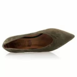 Le cuir de ces escarpins Les Fées de Bengale présente une jolie finition veloutée au toucher « peau de pêche ». La forme épaisse de leur talon évasé haut de 5 cm assurera une très bonne stabilité pendant la marche. Et si on mariait leur nuance kaki avec un rouge corail dans la tenue ?
