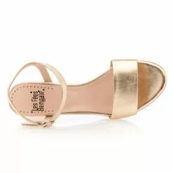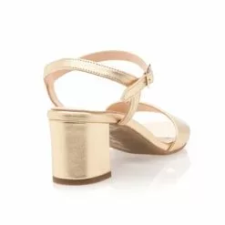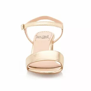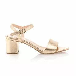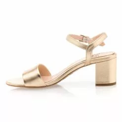 Le coup de foudre est immédiat à la vue de cette somptueuse paire de sandales en cuir doré au talon épais haut de 5 cm. On associera tout naturellement ce modèle chic et glamour à une tenue élégante, voire sophistiquée. Une robe du soir dos nu pour une occasion habillée ?