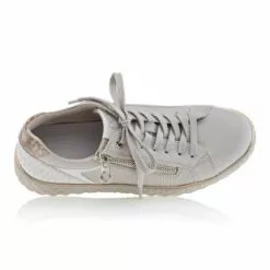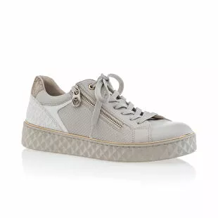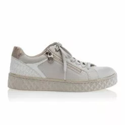 Ăpaisse semelle texturĂ©e, contrefort reprenant le logo monogrammĂ© de la marque, dĂ©tails dorĂ©s et col de cheville au motif « python » : ces baskets de ville beiges zippĂ©es Marco Tozzi jouent la carte dâun style subtilement dĂ©calĂ©. On adore quand la mode urbaine joue avec ses propres codes !
