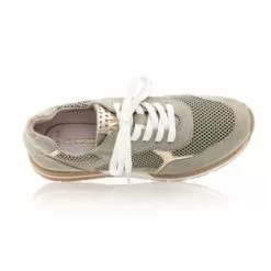 La basket de ville se prĂ©sente ici sous un nouveau jour grĂące Ă cette crĂ©ation tendance signĂ©e Marco Tozzi. On adore lâalliance entre leur texture douce vert kaki, leur motif ajourĂ© et leurs dĂ©tails Ă la finition mĂ©tallisĂ©e. Lâun de nos coups de cĆur de la saison !