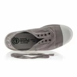 Ă porter avec ou sans lacets, les tennis en toile grise Lavanda de Natural World sâimposeront comme un nouveau basique de lâĂ©tĂ©. En effet, toutes les occasions seront bonnes pour profiter de leur lĂ©gĂšretĂ©, de leur souplesse et de leur style casual tout simplement indĂ©modable. Leur semelle en caoutchouc naturel se prolonge jusque sur leur bout rond sous la forme dâune petite coque de protection. TrĂšs pratique, ce modĂšle passe en machine (maximum 30°C), et il est ensuite recommandĂ© de le laisser sĂ©cher Ă lâair libre. On signale simplement que leur teinture naturelle peut sâestomper lors dâun premier lavage, il vaut donc mieux ne pas les mĂ©langer avec dâautres piĂšces ou vĂȘtements. Un must-have de la saison !