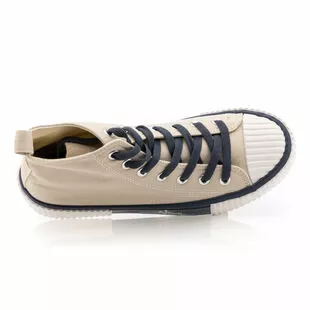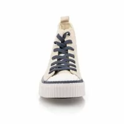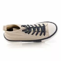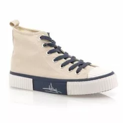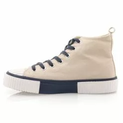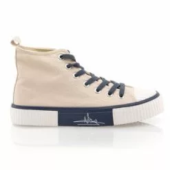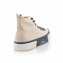 On profitera sans aucune modĂ©ration du style dĂ©contractĂ© et du chaussant confortable de cette paire de baskets montantes en toile beige. Durant une journĂ©e active de lâĂ©tĂ©, elles pourraient par exemple venir accompagner un short en jean dĂ©lavĂ© et un tee-shirt bleu (pour faire un petit rappel de leurs lacets et de leur semelle).