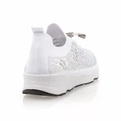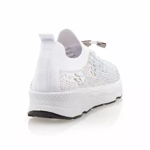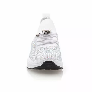 On opte sans hésitation pour le style décalé et graphique de ces sneakers chaussettes blanches au décor clouté argenté. Idée look : on utiliserait bien les lignes contemporaines et tendances de ce modÚle pour accompagner une mini robe patineuse et un blouson en jean délavé par exemple. Et vous ?