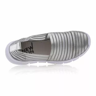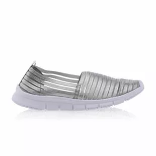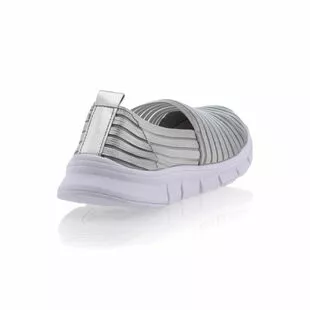 Ces chaussures à enfiler originales sont montées sur une épaisse semelle crantée extra confortable. Leur design alterne des rayures transparentes et argentées dans un effet moderne, voire futuriste. Elles viendront apporter un style unique à la tenue tout en assurant un chaussant trÚs agréable pendant la marche.