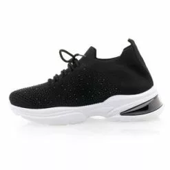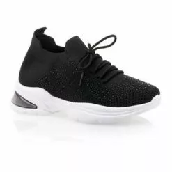 Ces baskets noires NewRun sont constituĂ©es dâune tige en maille tricot extensible, dâun dĂ©cor en strass ton sur ton et dâune semelle Ă©paisse Ă bulle dâair. Cette composition donne naissance Ă une piĂšce mode stylĂ©e, confortable et trĂšs agrĂ©able Ă assortir avec les looks du moment !