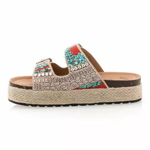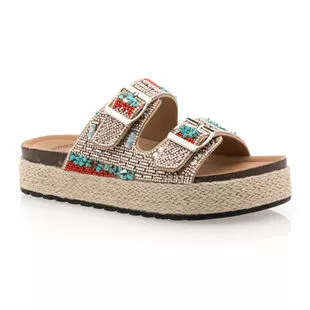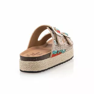 Ces sandales plateformes associent un décor en petites perles multicolores à une semelle en corde tressée épaisse de 3 cm. Elles déploient un style original, plein de charme, que l’on aura un plaisir fou à utiliser dans des tenues variées ! Par exemple avec une jolie robe d’été en lin ?