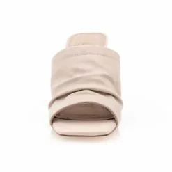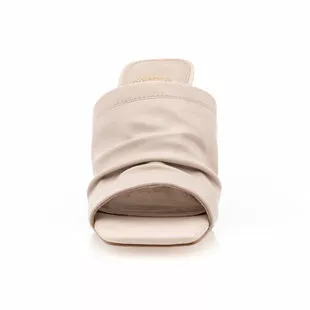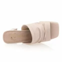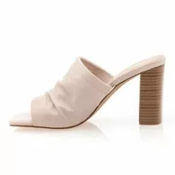 On succombe instantanément face au charme unique de cette paire de mules beiges à talon haut (de 8 cm). Leur effet joliment plissé sur le cou-de-pied, leur nuance nude et leur effet « bois » contrastant viennent en effet donner naissance à un modèle tout simplement irrésistible !