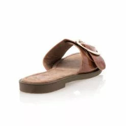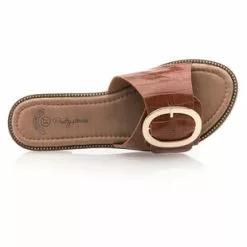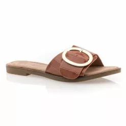Ces mules plates féminines et glamour arborent une large bride transversale cognac à l’effet « écailles de serpent » et surmontée d’une boucle à ardillon dorée à la taille surdimensionnée. Un modèle original qui viendra immédiatement donner un style unique à la tenue !