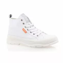Semelle track épaisse de 4 cm, détails colorés et tige montante : ces baskets de ville blanches Refresh séduiront instantanément les adeptes de mode urbaine. Et si on les portait avec un short en jean délavé et un tee-shirt orange (pour faire un joli rappel de leur petite étiquette) ?