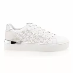Motif ajourĂ© graphique, dĂ©tails argentĂ©s brillants sur lâarriĂšre du pied et contrefort mĂ©tallisĂ© : ces baskets basses blanches Rhapsody nous proposent un style urbain tendance. On les imagine bien portĂ©es avec une jupe en jean (mini ou de forme trapĂšze) et un top rose pastel. Et vous ?
