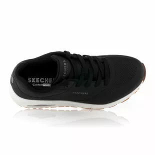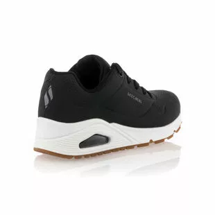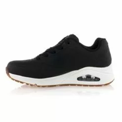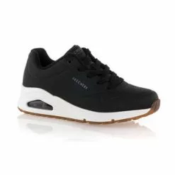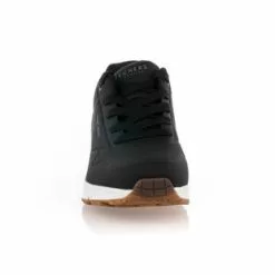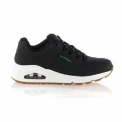 Les sneakers noires Uno Skechers compensĂ©es (de 4 cm) en cuir synthĂ©tique arborent des lignes minimalistes et sportives. Ultra confortable, ce modĂšle Ă coussin dâair visible dispose dâune semelle intĂ©rieure en mousse viscoĂ©lastique Ă mĂ©moire de forme et dâune doublure en tissu technique mesh respirant.