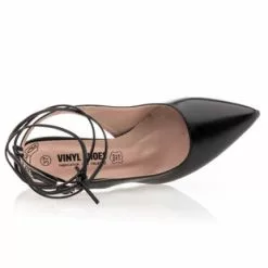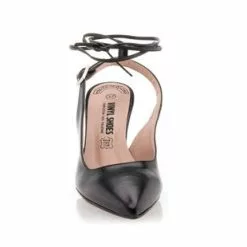 Avec leur fine lanière arrière dotée d’une boucle à ardillon et leur lien à nouer autour de la cheville, ces escarpins noirs à talon aiguille (haut de 8 cm) nous proposent un style renversant de charme ! On les portera idéalement avec une tenue mi-longue comme une jupe midi et un beau chemisier par exemple.