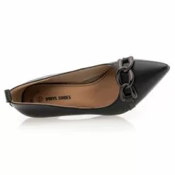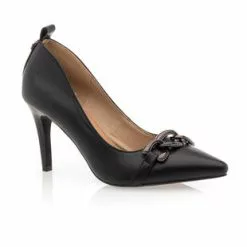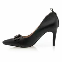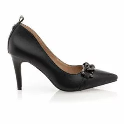 Ces escarpins noirs au talon aiguille de 6 cm arborent une chaînette brillante sur le bout du pied et un contrefort avec une petite tirette d’enfilage. Leurs lignes précises et sophistiquées viendront instantanément sublimer la silhouette. Une création qui ravira les amoureuses de pièces mode glamour et ultra féminines !