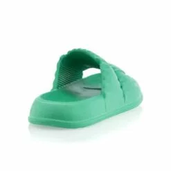 On adopte volontiers le style ludique et délicieusement régressif de cette paire de mules vertes Xti. En effet, avec sa couleur pop, sa bride matelassée et sa semelle incurvée, ce modèle nous offre un vrai petit cocon de bien-être et de détente. Difficile d’y résister !